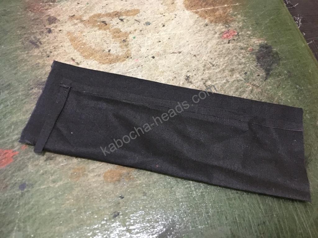 型紙が出来たらあとは切り出して・・・ってなるんですが今回外側の小銭入れをつけるにあたって必要な小銭ポケットを生地で作っていきます