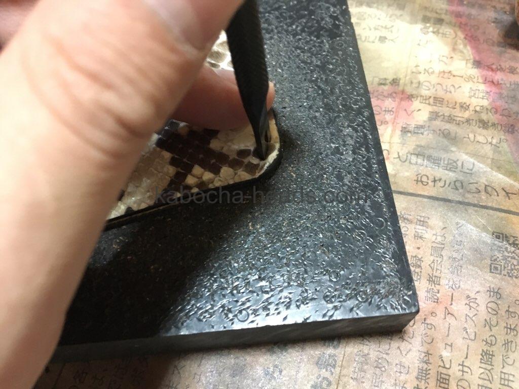 素材の希望はヘビ革ってことだったんで、色々と試行錯誤の末1番見慣れてるヘビヘビしいものに