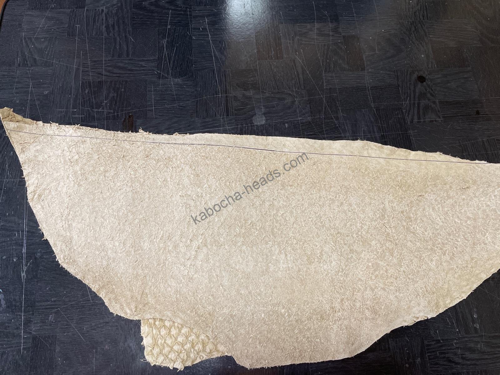 鱗の剥がした凹凸とか、裏面の繊維とかそのままなんで、そこを処理して加工しやすく整えていくところから始まります