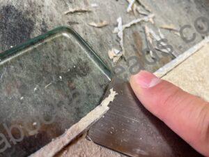 大体1.3㎜くらいあったので、一心不乱に裏面の繊維をペンチやら指ちからやらでむしり取るんです