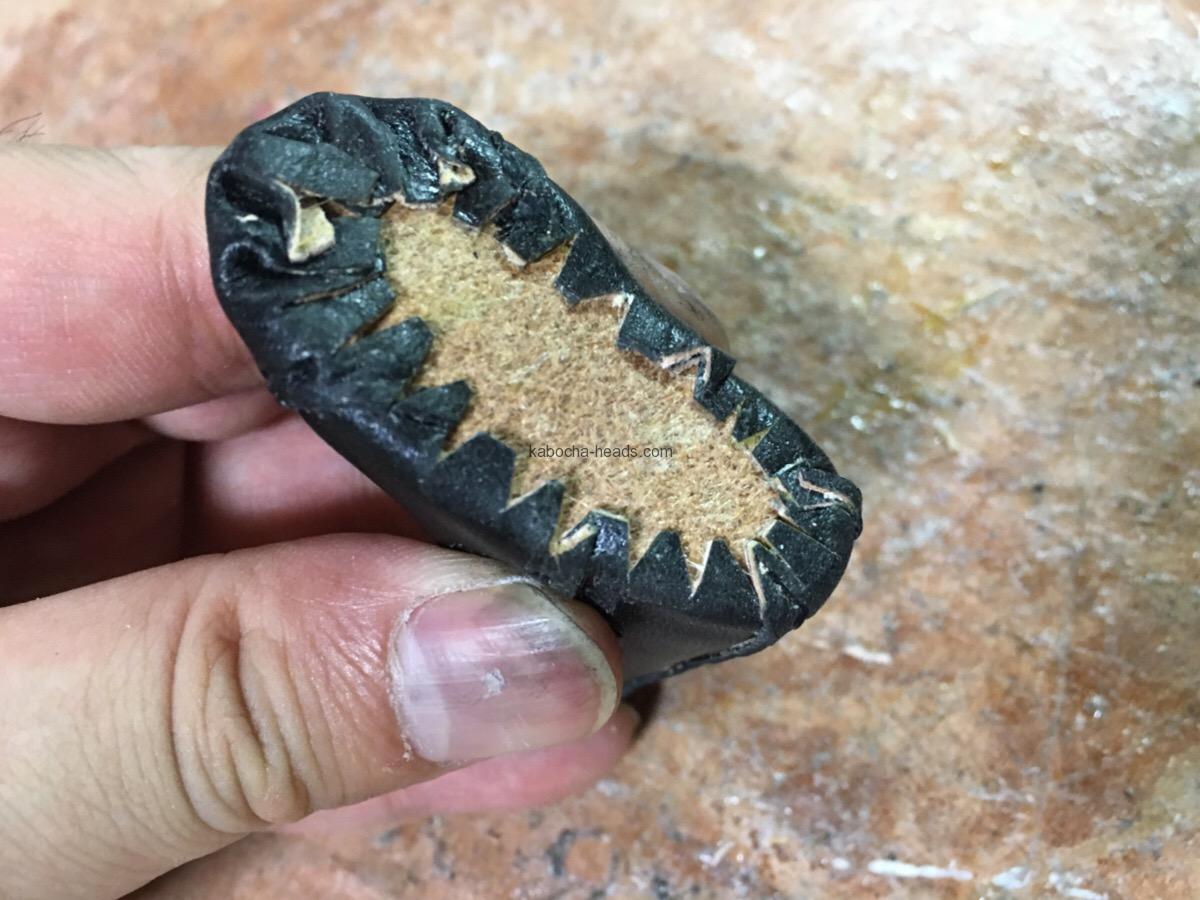 その後強力な接着剤を塗って塗って、ギザギザの山をラジオペンチやらで引っ張りつつ裏側に巻き込むように貼り付けます