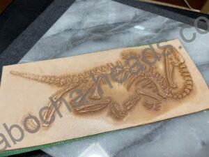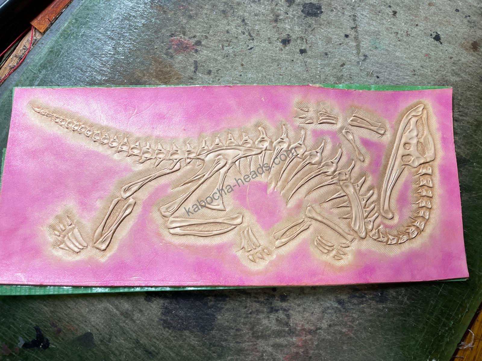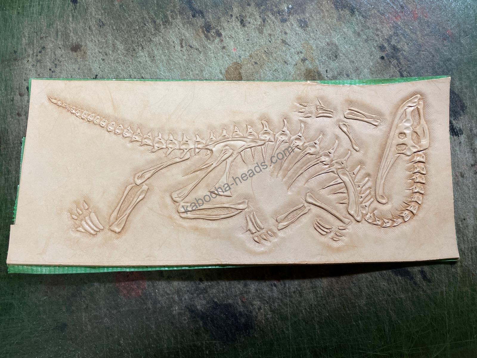 恐竜化石のカービングの二つ折り財布というオーダーがありまして