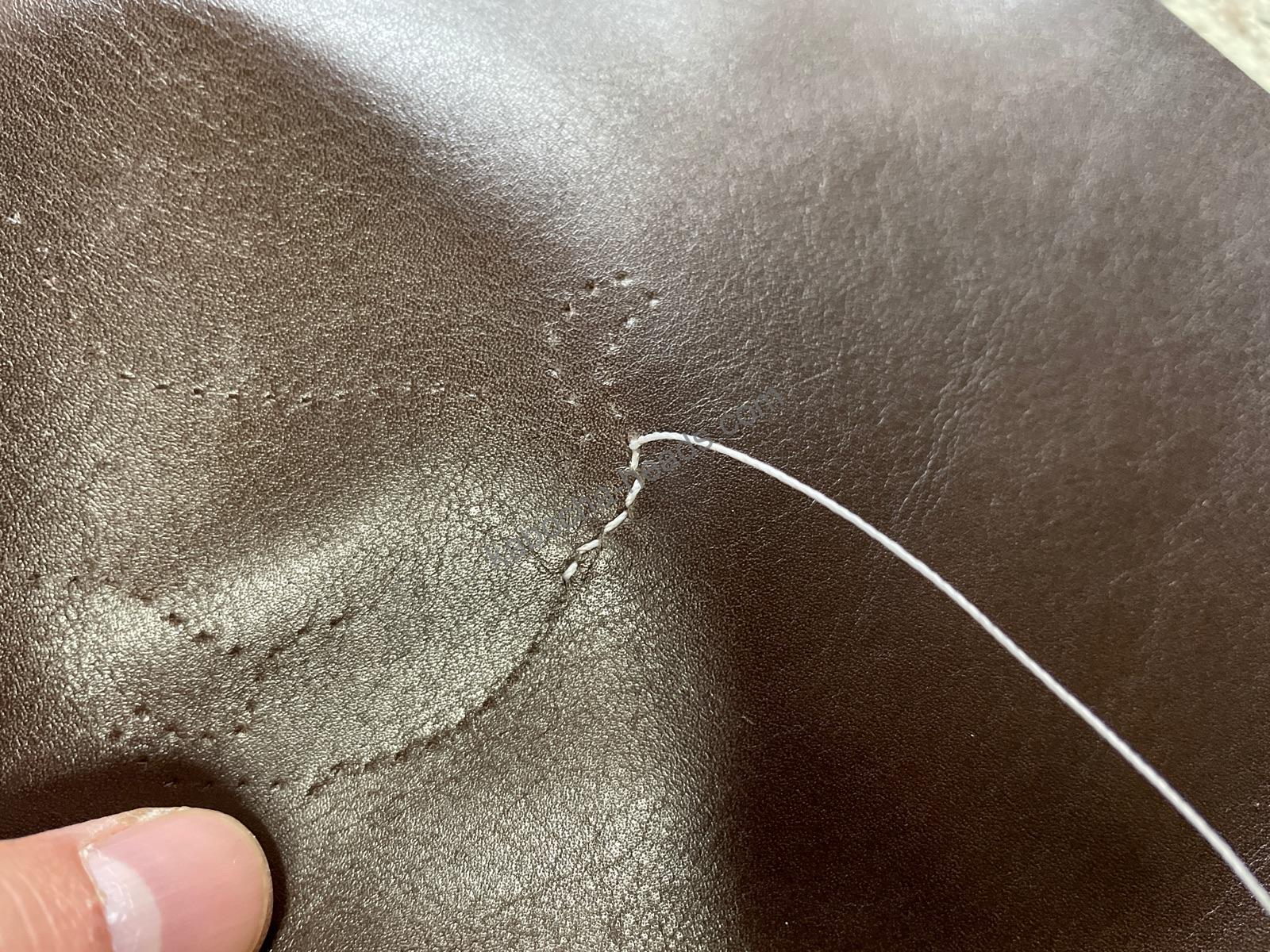 というわけで、革はこげ茶なんでうまく映えるようにするのにステッチは白で