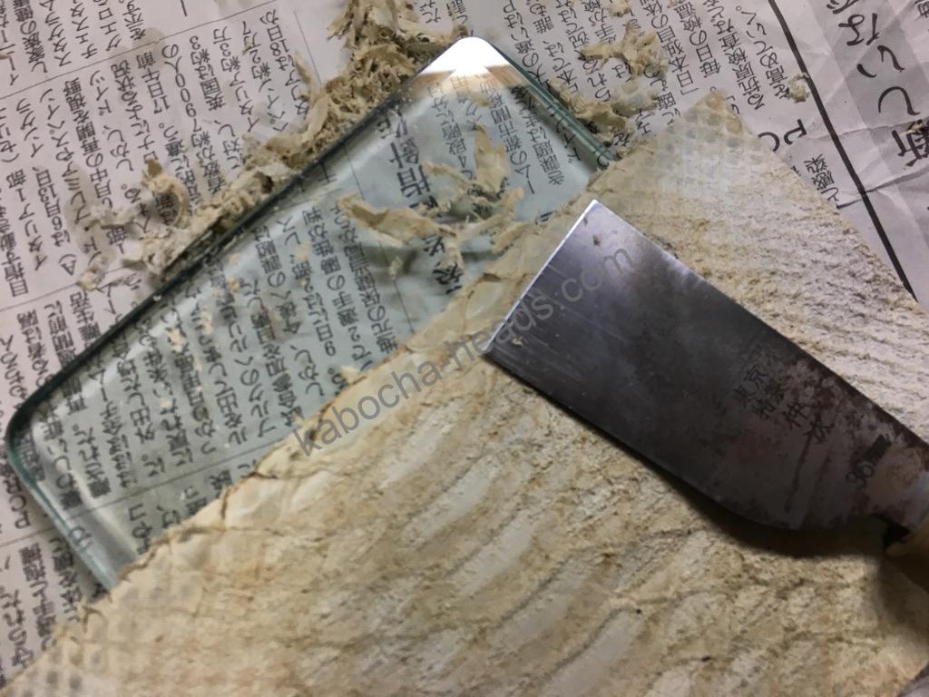 っても通常のベタ漉きできるような相手ではないので、どうにかこうにか鱗を抉らないように薄くギリギリまで漉きます