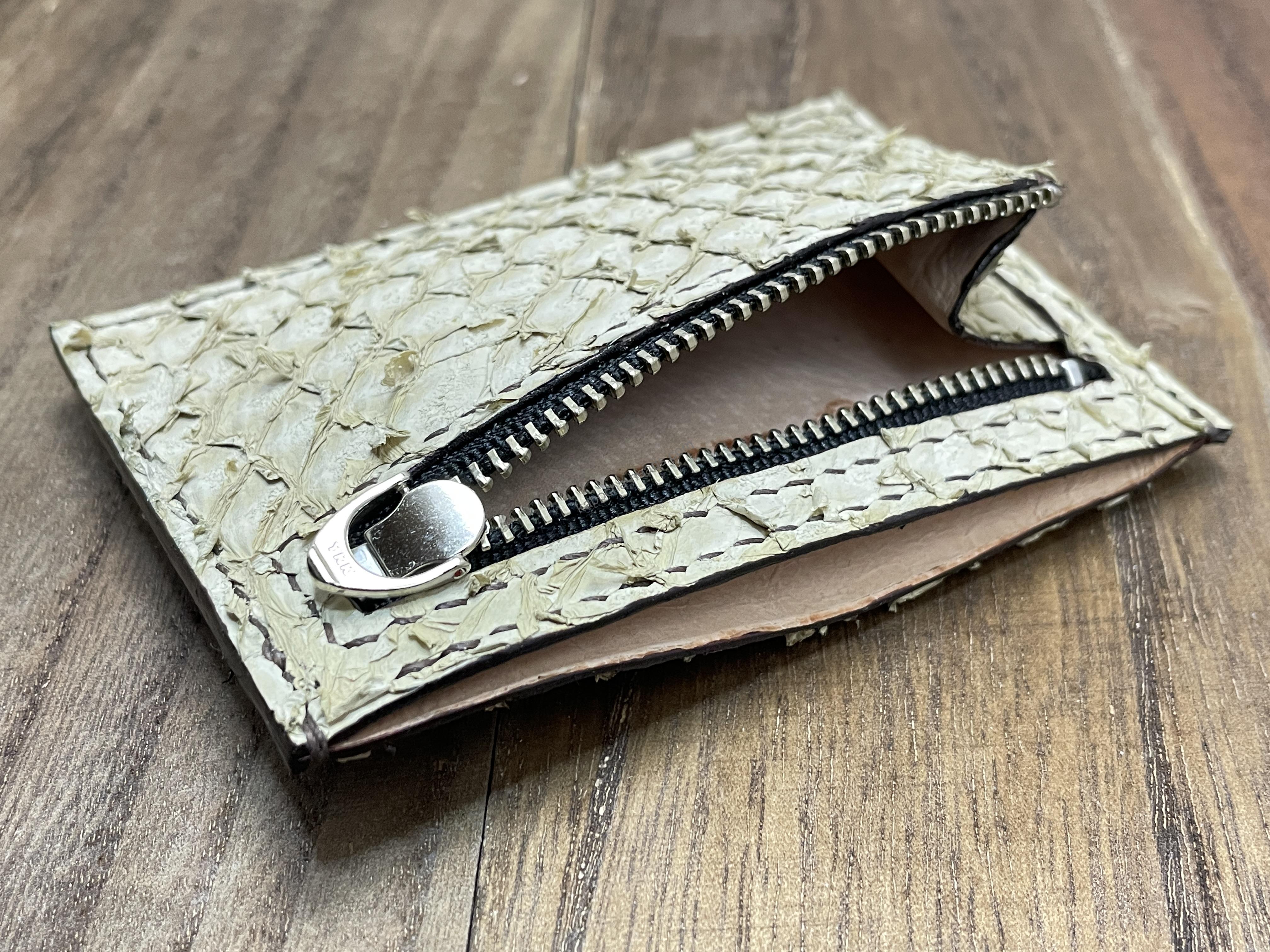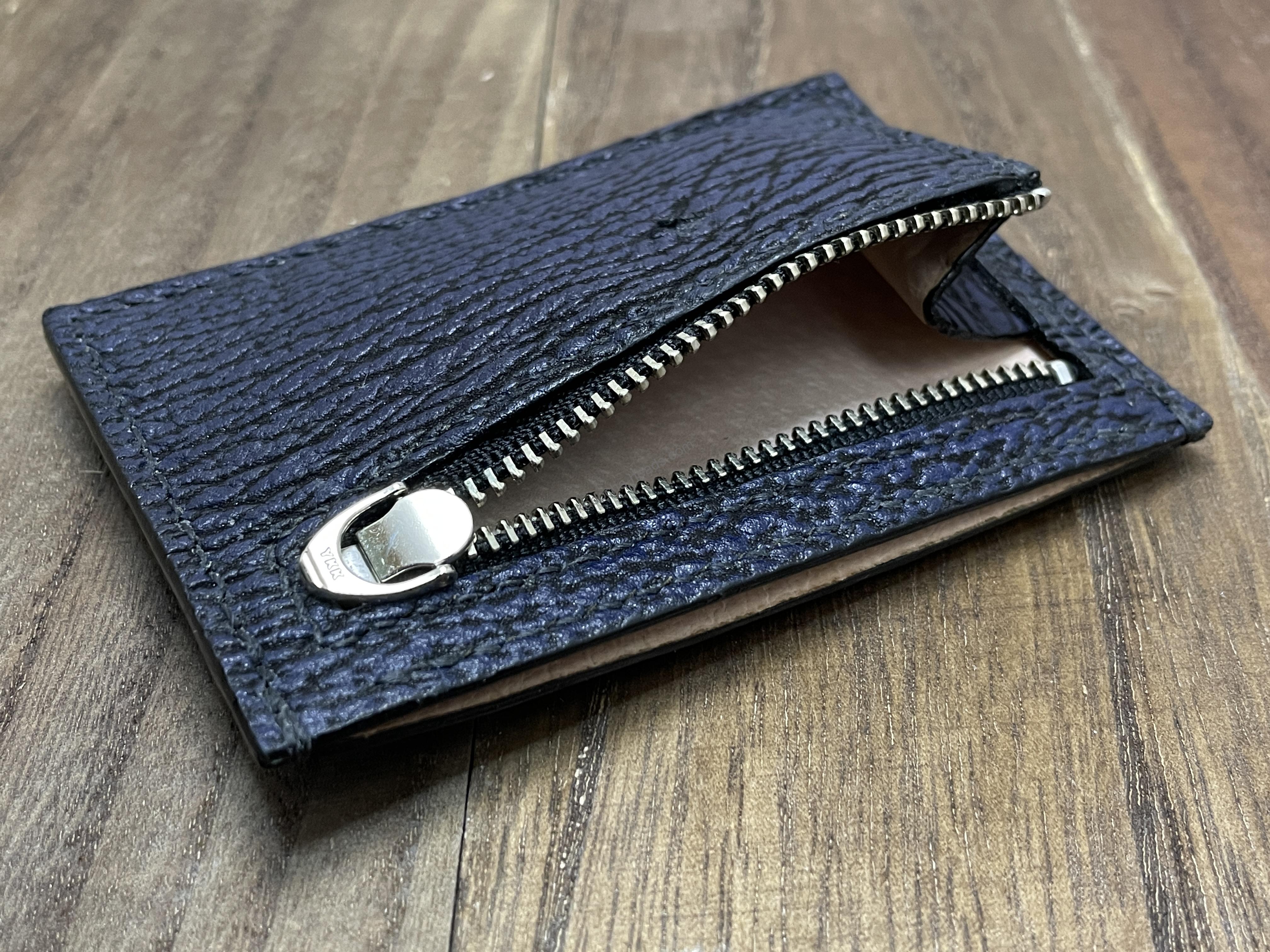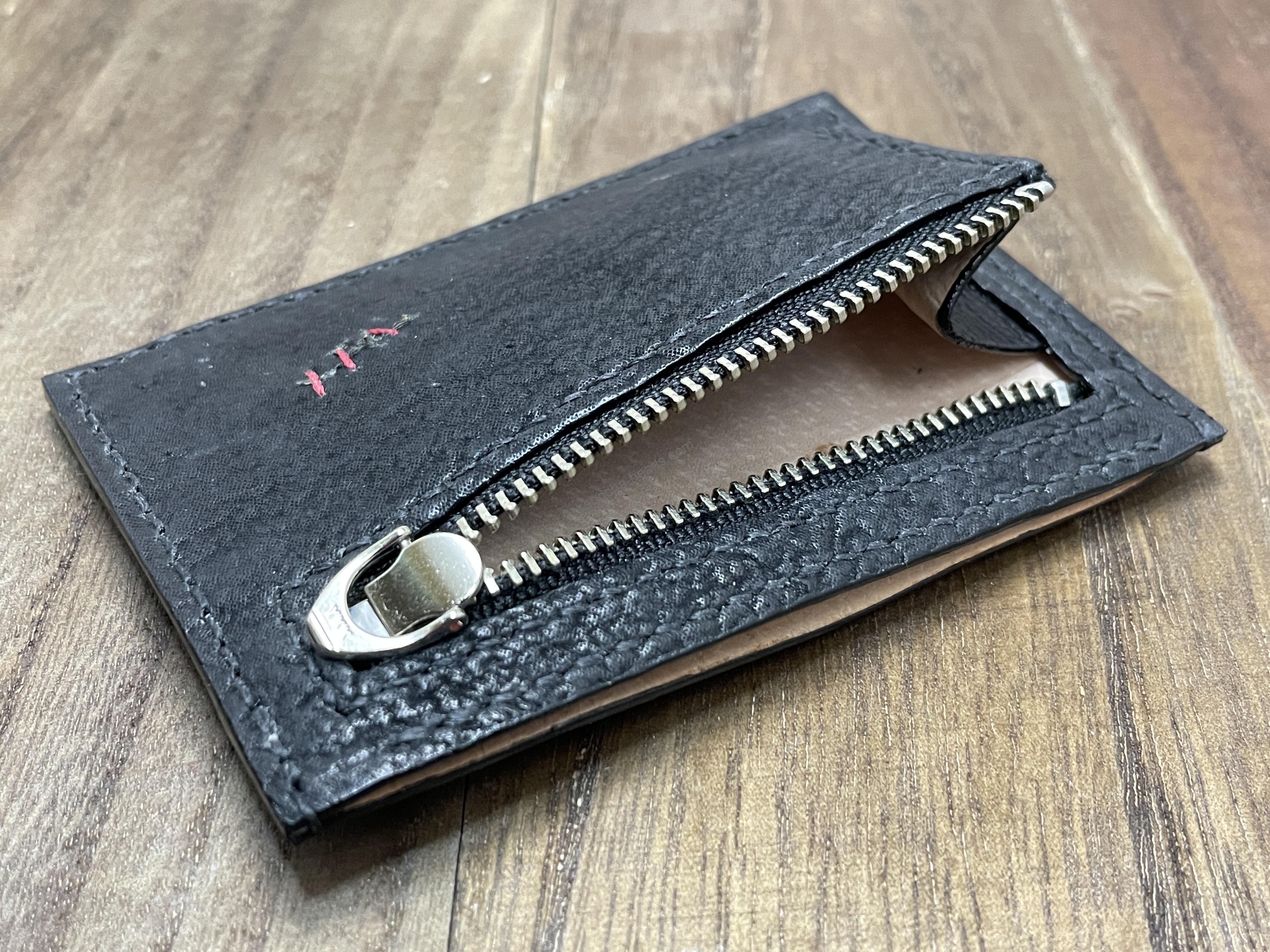小銭入れファスナー下部に刻印がありますが、エキゾチックレザーなどを使用する場合には張り合わせ中面に刻印が入ります。