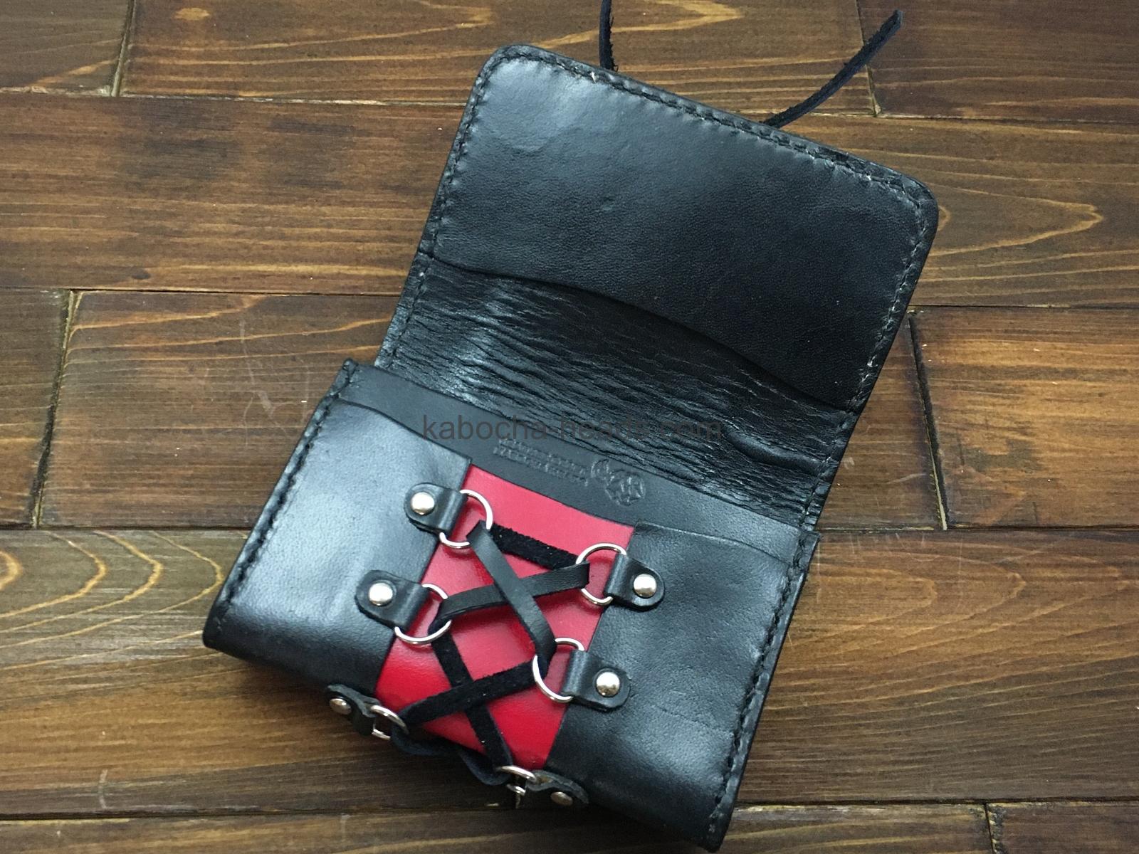 本革を使い、すべて手縫いで作っているセンター部分編み上げのゴシックなコルセット風仕上げの名刺入れです。