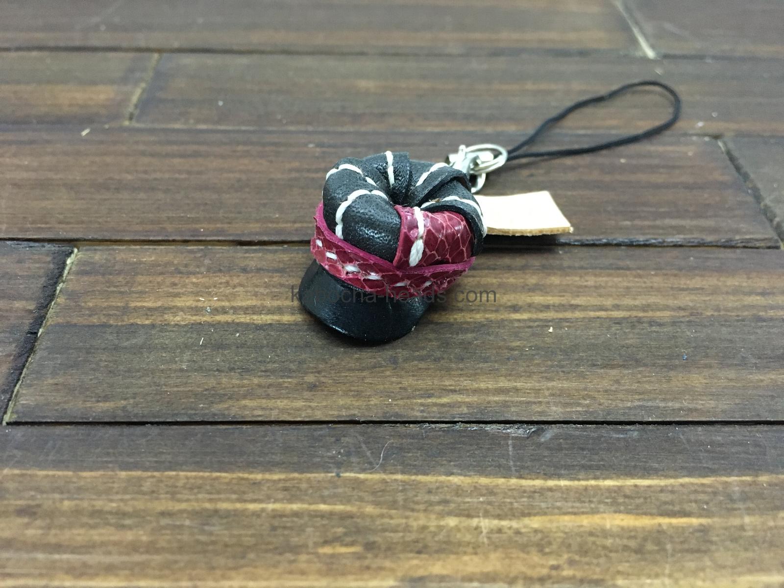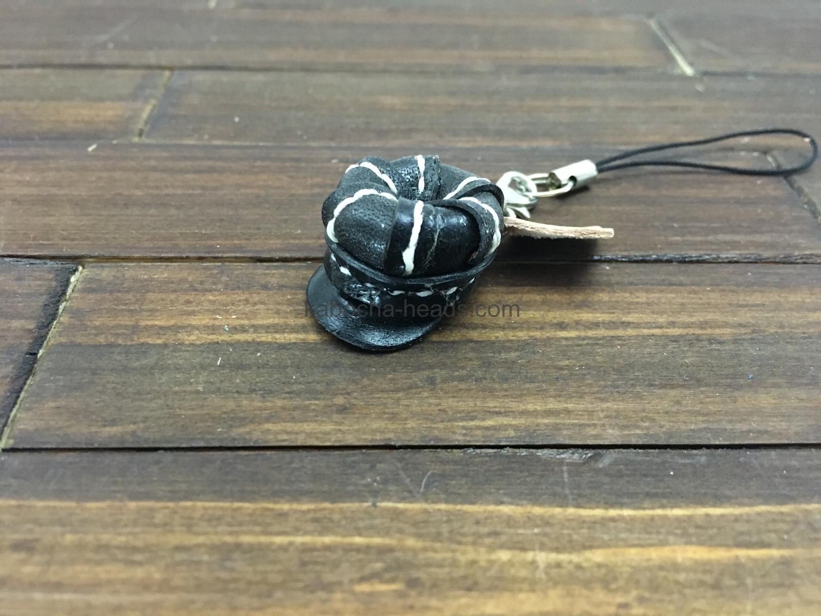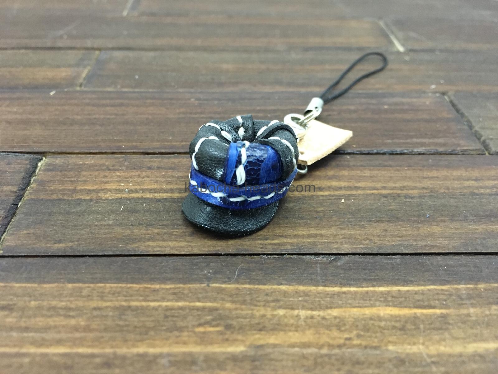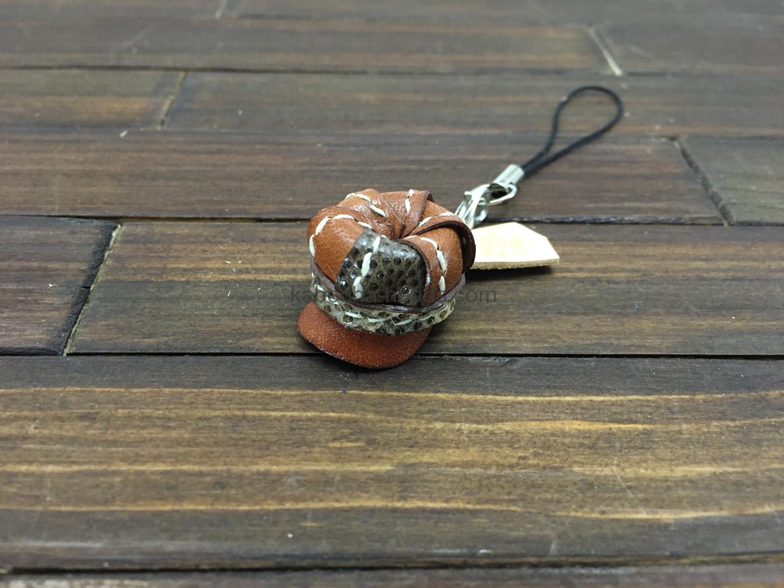 パーツ一枚一枚全て本革で作っている親指サイズの小さなミニチュアキャスケットです